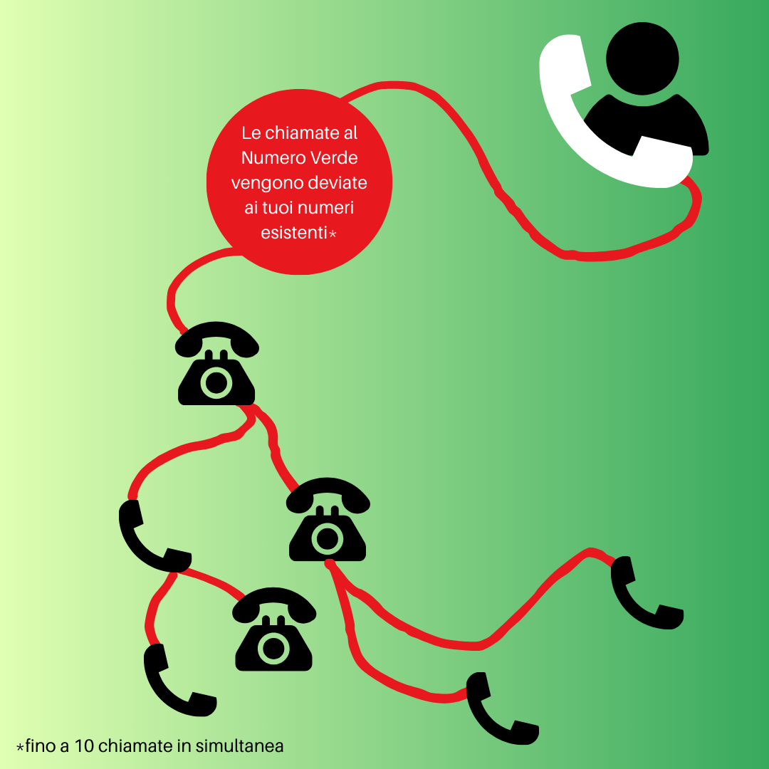 La deviazione di chiamate in cascata permette di reindirizzare automaticamente le chiamate ricevute a un altro numero di telefono. Questa funzionalità può essere molto utile per assicurare che le chiamate non vengano mai perse, specialmente in un contesto aziendale. Per esempio, se il tuo numero verde riceve una chiamata e tu non sei disponibile per rispondere, la chiamata può essere automaticamente inoltrata a un altro numero. Se anche questo numero non risponde, la chiamata può essere inoltrata a un terzo numero, e così via. Questo processo continua fino a quando la chiamata non viene risposta o fino a quando non ci sono più numeri nella “cascata”.